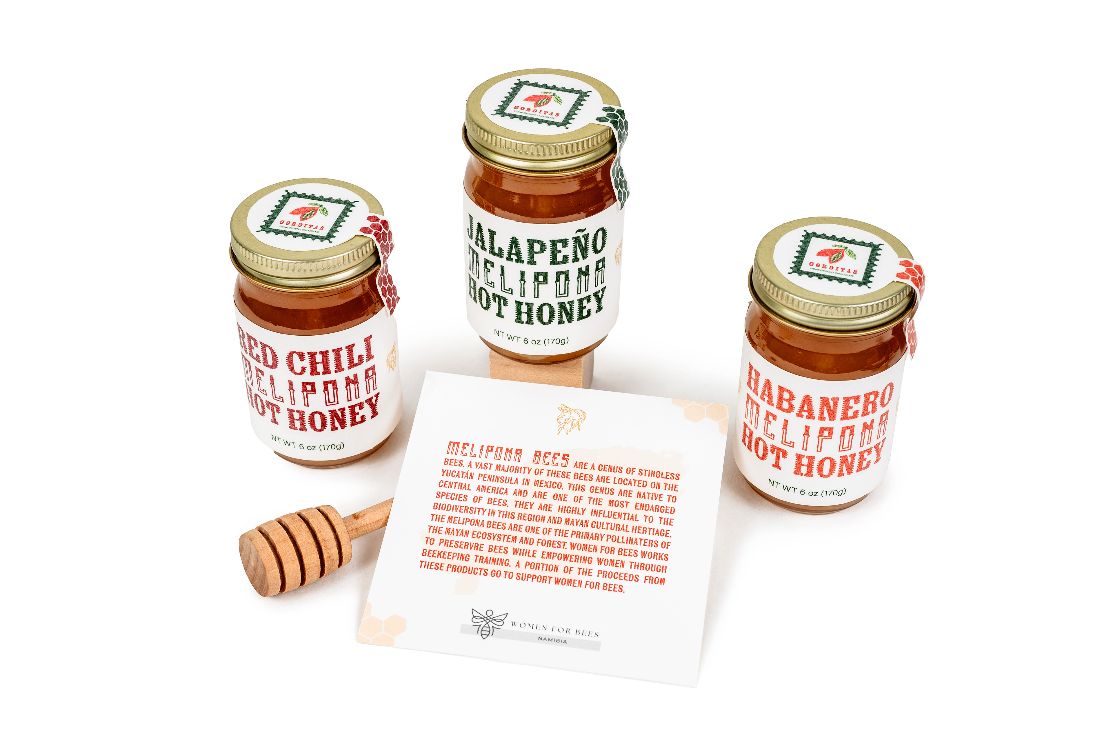 Experience the heart of Mexico through Gorditas Stone Ground Chocolate with three distinctive flavors: Habanero White Chocolate, Jalapeno Dark Chocolate, and Red Chili Milk Chocolate, all sweetened with Melipona bee honey. These chocolate products include truffles, bars, and cocoa powders, all providing a unique blend of sweetness and spice. In support of “Woman for Bees” organization our chocolate is commitment to support Mexican women in beekeeping ensuring bee preservation and empowering local communities.